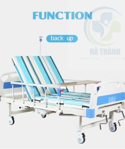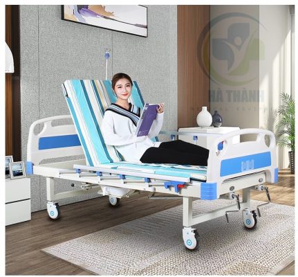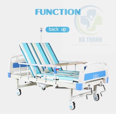 Kết cấu: – Thân giường làm bằng sắt sơn tĩnh điện, – Vạt giường làm bằng thép tám dập nguội, sơn tĩnh điện. – Thanh chắn bằng hợp kim nhôm, gấp xếp gọn gàng. – Bánh xe chịu lực, êm. – Đầu và đuôi giường bằng nhựa ABS chịu lực, chịu va đập. Chức năng: – Nâng lưng 0~80 độ: giúp bệnh nhân ngồi dậy. – Nâng chân: 0~45 độ giúp bệnh nhân co dũi chân. – Giường có lỗ để bô vệ sinh được thiết kế thao tác dễ dàng để bô vào và lấy bô ra |
