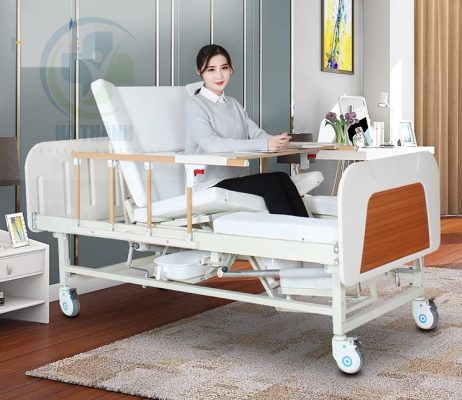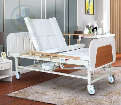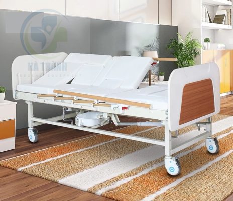 Giường gồm các chức năng: – Nâng lưng: 0-85 độ giúp bệnh nhân ngồi dậy và nằm xuống – Nâng chân lên 0-45 độ, hạ xuống 0-80 độ giúp bệnh nhân co dũi chân và giúp bệnh nhân ngồi dậy như đang ngồi trên ghế. ĐẶT BIỆT: GIƯỜNG CÓ 2 BÊN GẤP LÊN 30 ĐỘ GIÚP GIỮ KHÔNG CHO NGƯỜI BỆN NGÃ SANG 2 BÊN VÀ PHẦN MÔNG SẼ NGHIÊNG LÊN ~15 ĐỘ KHI NÂNG LƯNG GIÚP GIỮ KHÔNG CHO NGƯỜI BỊ TRƯỢT XUỐNG ĐUÔI GIƯỜNG KHI NÂNG LƯNG. – Nghiên người sang trái sang phải 0-55 độ giúp việc vệ sinh lau chùi cho bệnh nhân được dễ dàng, đặc biệt giúp bệnh nhân thay đổi tư thế nằm nhằm tránh hoại tử da do nằm quá lâu ở 1 tư thế. – Giường có bàn ăn giúp bênh nhân ăn uống dễ dàng. – Giường có vị trí để xô gội đầu giúp việc vệ sinh gội đầu cho bệnh nhân sạch sẽ dễ dàng. – Giường có bô vệ sinh được thiết kế thuận tiện cho việc đặt bô vào và lấy ra. 1.) Chất liệu: thép cán nguội 2.) góc lưng: 0 ° -85 ° chân lên: 0 ° -45 ° chân xuống góc: 0 ° -80 ° 3.) Gia công: Kim loại sơn tĩnh điện bảo vệ môi trường 4.) Kích thước giường: 2000 * 900 * 530mm Kích thước lỗ vệ sinh: 230 * 180mm 5.) kích thước lan can: 230 * 950mm Kích thước đóng gói: 1950 * 930 * 240mm 6.) Vật liệu đóng gói: carton và túi dệt 7.) Sản phẩm gồm: – Đệm & Đệm bằng bông (dày: 6,5cm) – Thanh chắn hợp kim nhôm gấp xếp – Chậu toilet – Chậu gội đầu – Bàn ăn – 4 bánh xe có khóa, êm – Đầu/đuôi giường nhựa ABS |