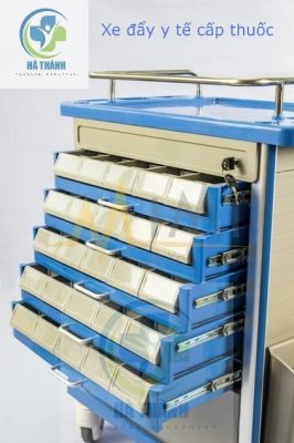 Cấu trúc: – Nóc tủ bằng nhựa ABS dễ lau chùi – Tủ có 2 mặt với 50 ngăn chứa thuốc – Thanh chắ nóc tủ bằng inox 304 – 4 cột tủ bằng nhôm – Tủ có hệ thống khóa trung tâm – Có 1 thùng chứa tiện ích – Có 2 thùng đựng rác – 4 bánh xe cao cấp êm, 2 bánh có khóa